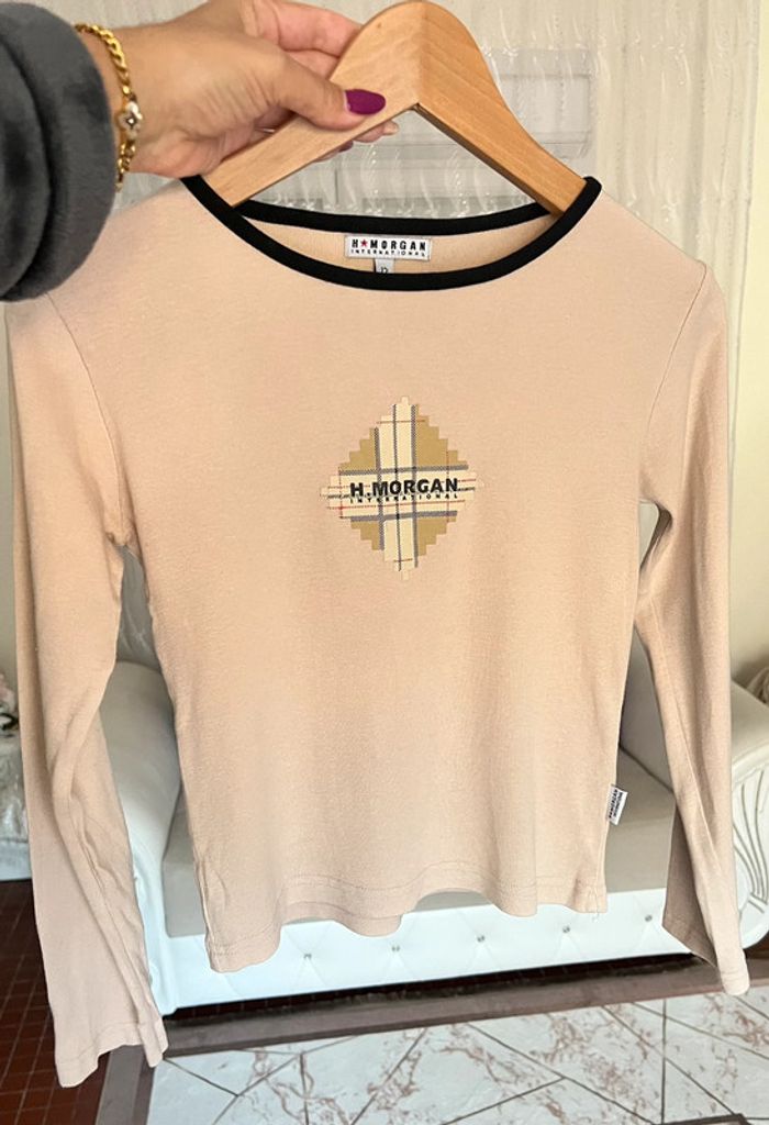 T-shirt à manches longues Morgan Taille 12 ans Coloris beige et noir 100 % coton Maison non fumeur et sans animaux 📩Je réponds rapidement aux messages 📦Envoi rapide et soigné