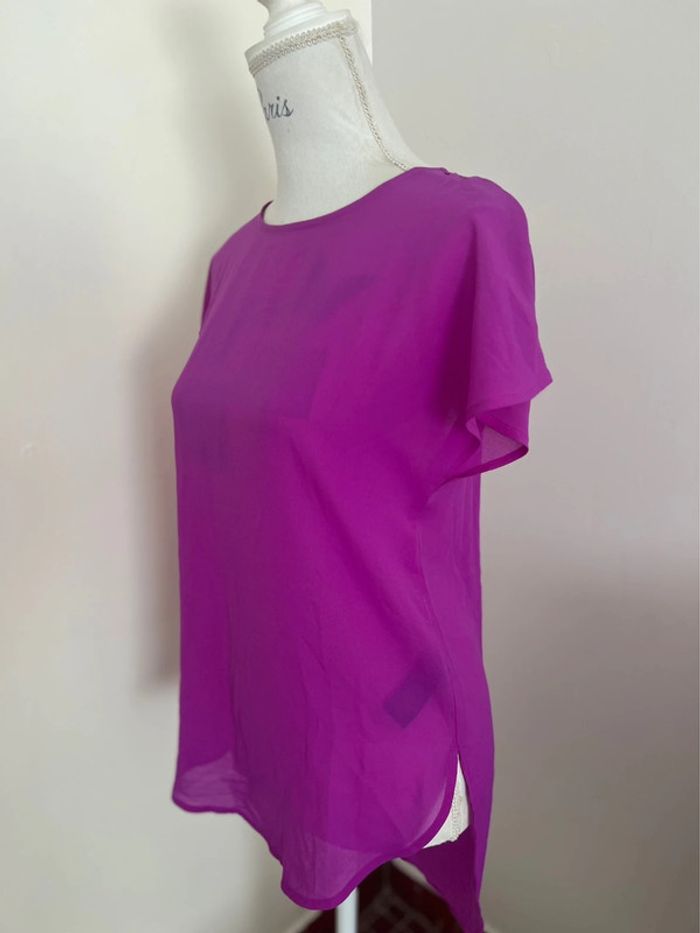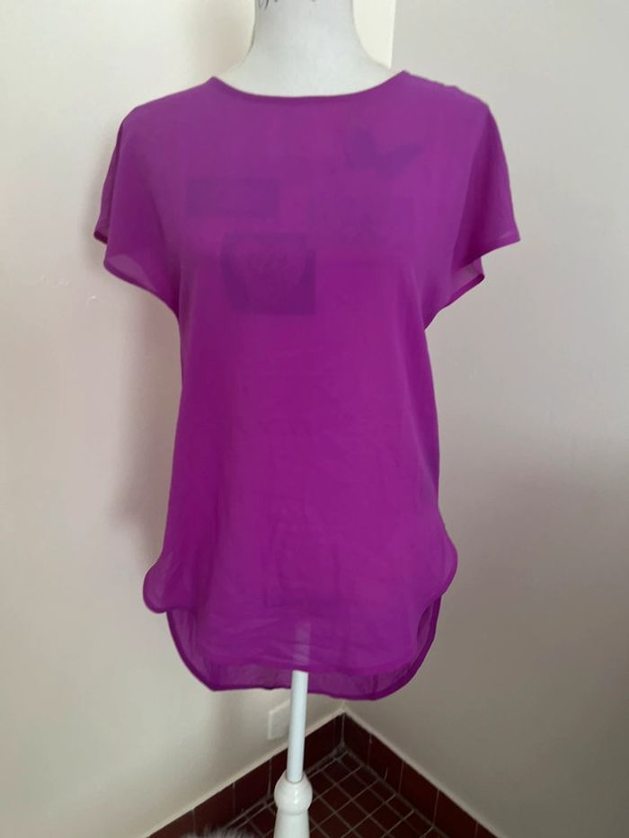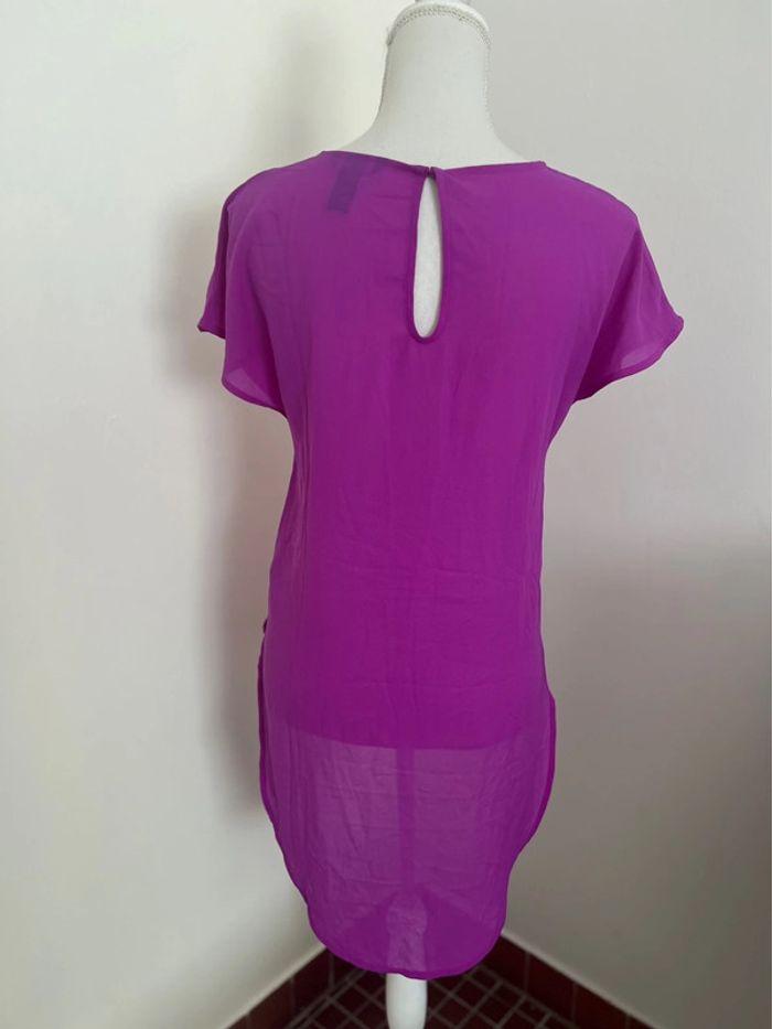 Haut t-shirt top tunique H&M été Manches courtes Coloris violet Très léger et transparent Idéal bord de mer, piscine Taille 38 Plus long dans le dos 100 % polyester Bouton de rechange Maison non fumeur et sans animaux 📩 Je réponds rapidement aux messages 📦 Envoi rapide et soigné