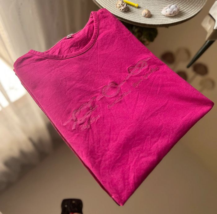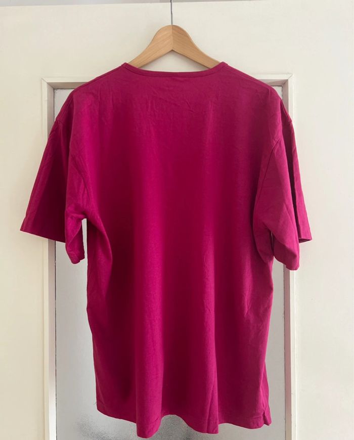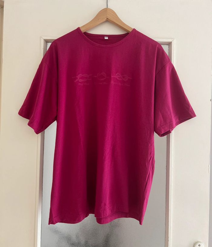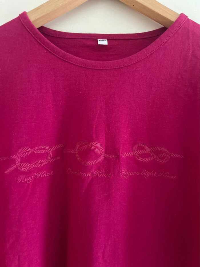 T-shirt uni femme Taille 46 100 % coton Très agréable à porter Coloris framboise Imprimés cordes sur le devant 57 cl de largeur taille mesurée d’aisselle à aisselle 70 cm de longueur Maison non fumeur et sans animaux 📩 Je réponds rapidement aux messages 📦 Envoi rapide et soigné