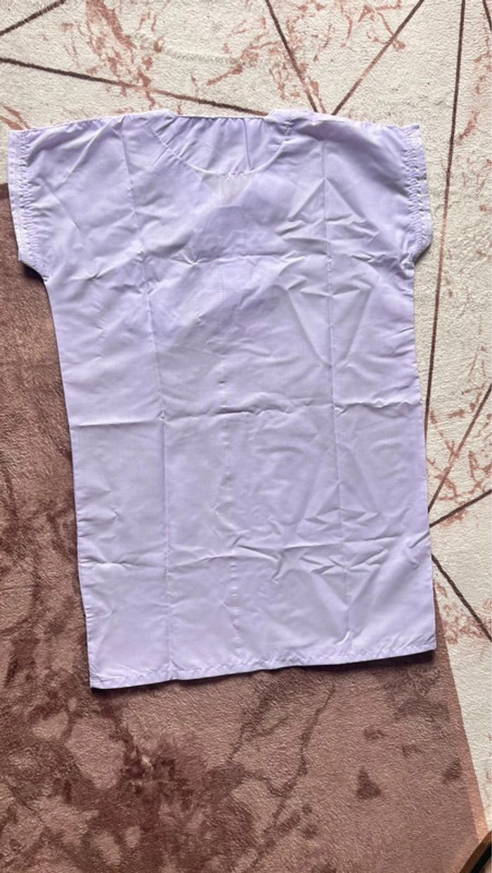 Tenue, chemise de circoncision ou autre pour enfant en coton À manches courtes Taille indiqué 4 ans 66 cm de longueur 44 cm de largeur Coloris mauve très clair Idéal pour offrir car neuve Sortie de l'emballage pour prendre les photos 📩 Je réponds rapidement aux messages 📦 Envoi rapide et soigné