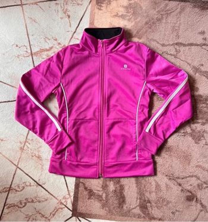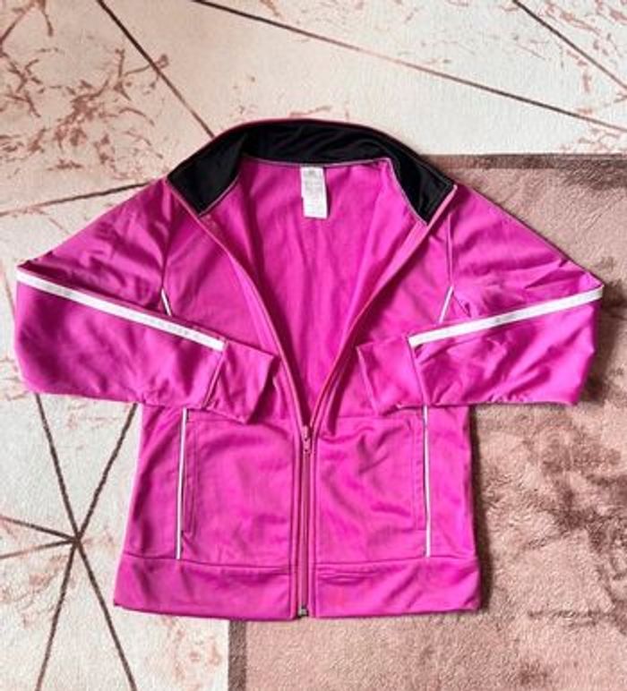 #fifiko13vêtementfille8ans Veste zippée Domyos Taille 8 ans Deux poches devant Légère tâche au dos (discrète un point, voir photo) 100 % polyester Très belle couleur Rose foncé Maison non fumeur et sans animaux 📩 Je réponds rapidement aux messages 📦 Envoi rapide et soigné