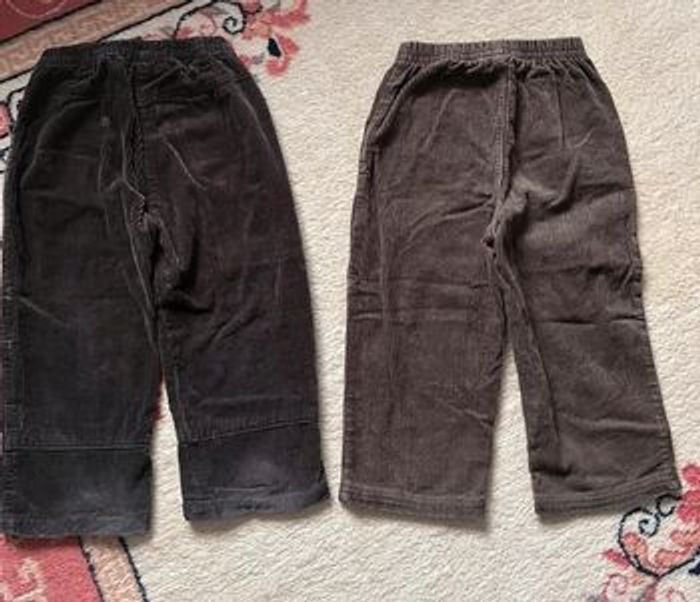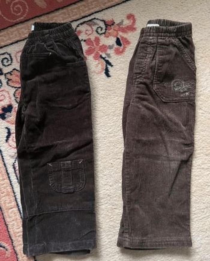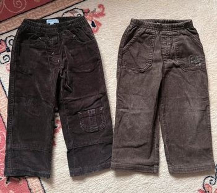 Lot de deux pantalons côtelés 2 ans Coloris marron 100 % coton Un de marque Grain de blé et l'autre de marque Tex Épais tiennent chaud (Une tâche derrière le pantalon que j'ai réussi à enlever avec la lingette) 📩 Je réponds rapidement aux messages 📦 Envoi rapide et soigné