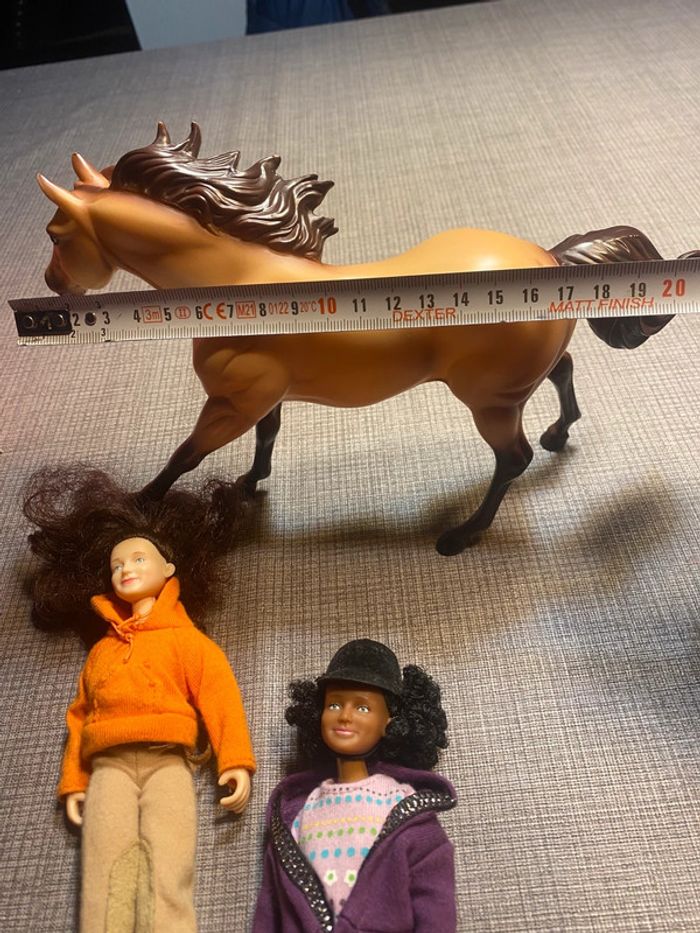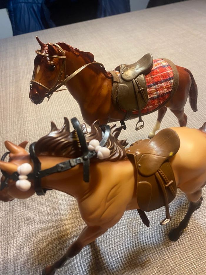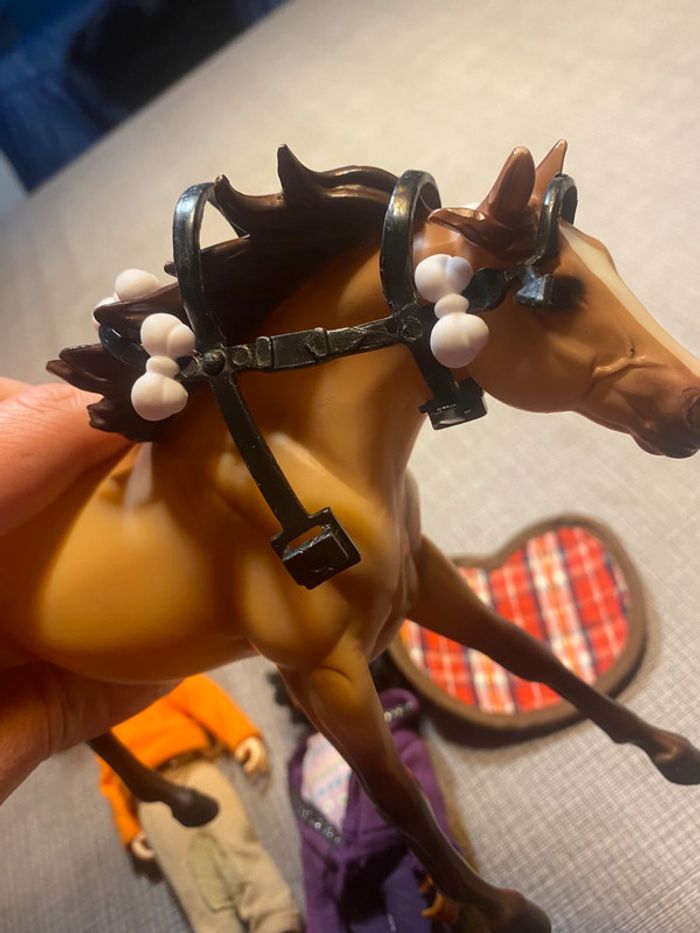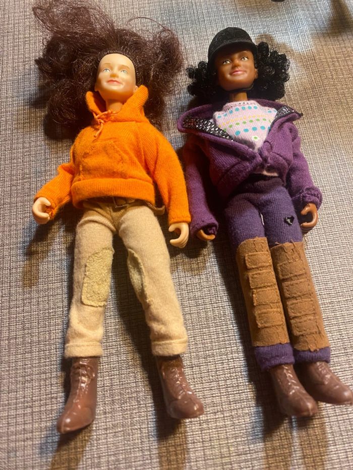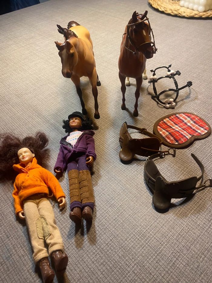 2 poupées et leurs chevaux Avec les accessoires des photos(…) Tb état, une attache cassée (dernière photo ) #chevaux #cavaliereschleich #poupeecavaliere