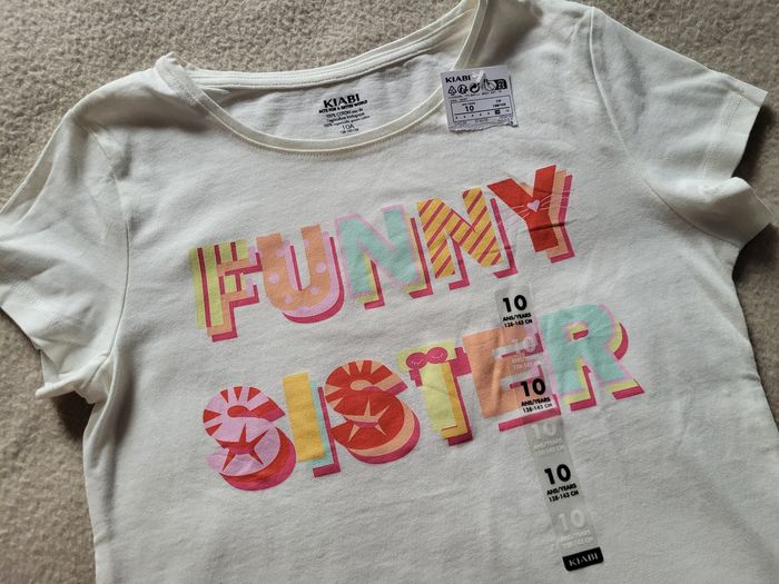 T-shirt kiabi 10 ans Neuf avec étiquette Crème à motif pour une sœur "Sister"
