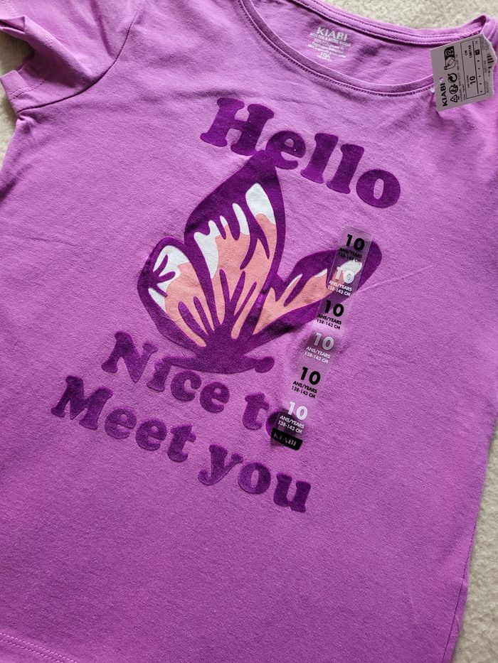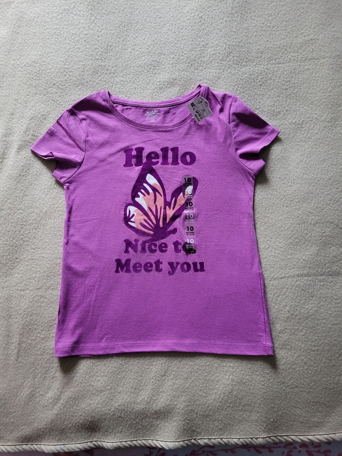 T-shirt kiabi 10 ans Neuf avec étiquette Violet, papillon en velours