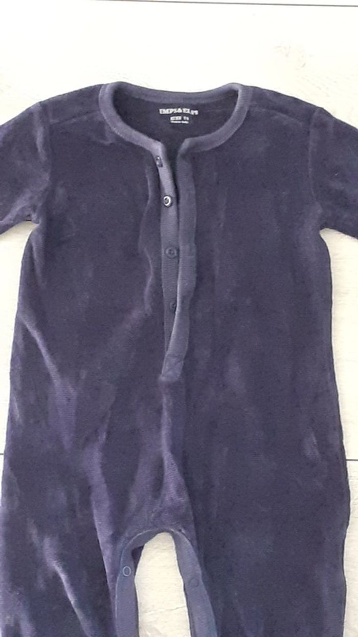 Pyjama velours 1 pièce sans pieds avec pressions entrejambe et boutons sur le devant coloris bleu marine #jenni1428_garcon_douzemois