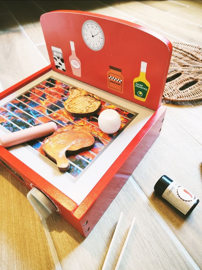 🥩 Dinette table d'éveil/activités barbecue et aliments en bois