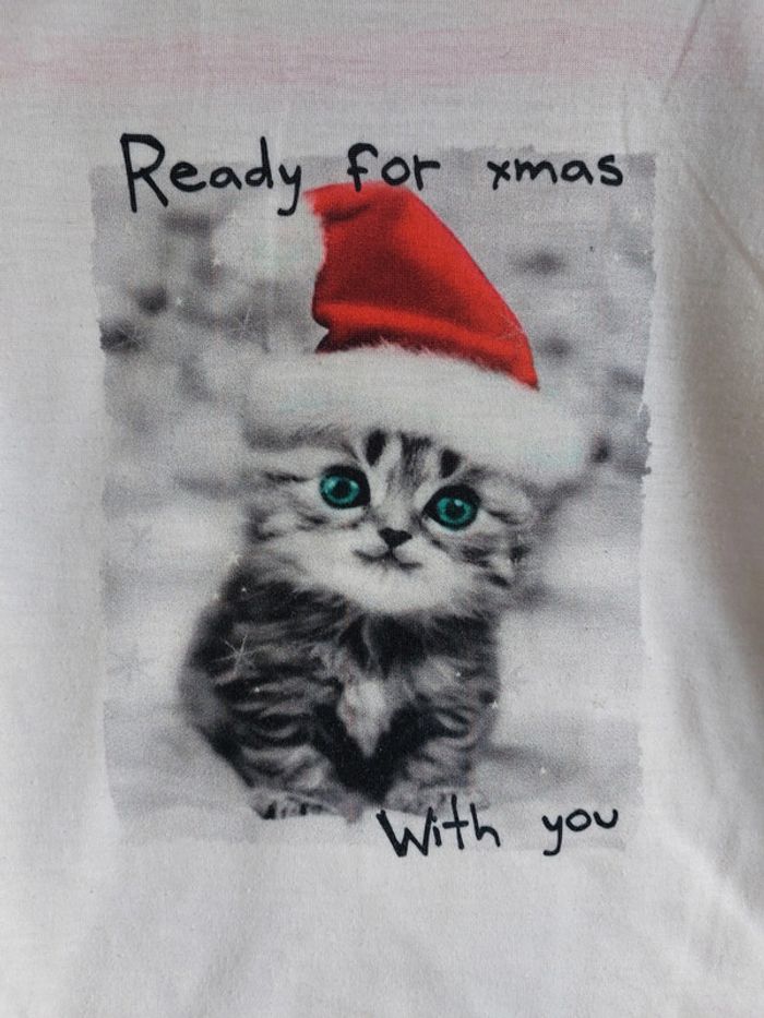 Inscription "Ready for xmas with you" Chat avec bonnet de Noël