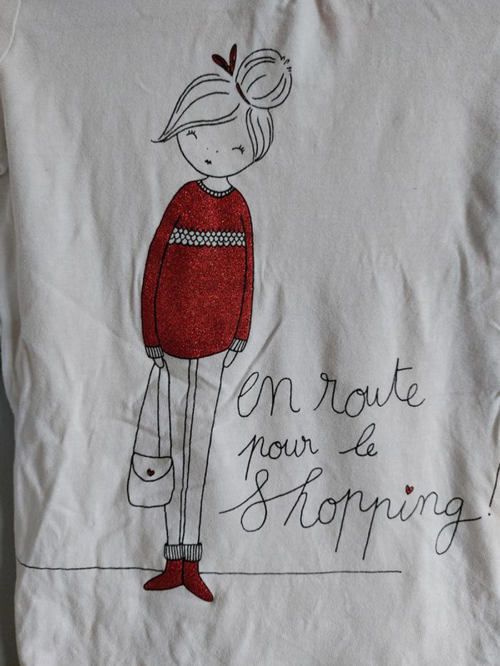 Sous pull col roulé Inscription "en route pour le shopping" Pull et chaussures rouges pailletés