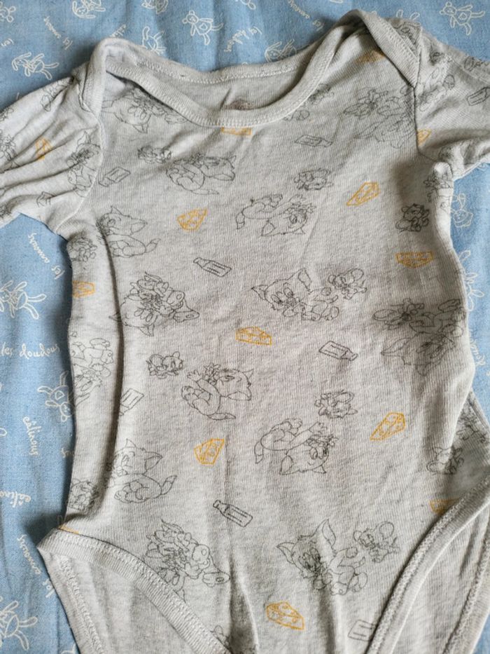 Body gris tom et Jerry 6M L'écriture de la marque c'est enlever au lavage (voir photo)