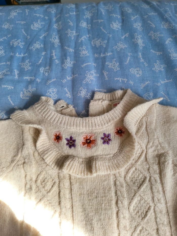Robe blanche en laine avec petite fleur sur le col 6M du pareil au même - photo numéro 7