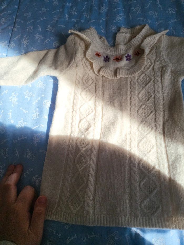 Robe blanche en laine avec petite fleur sur le col 6M du pareil au même