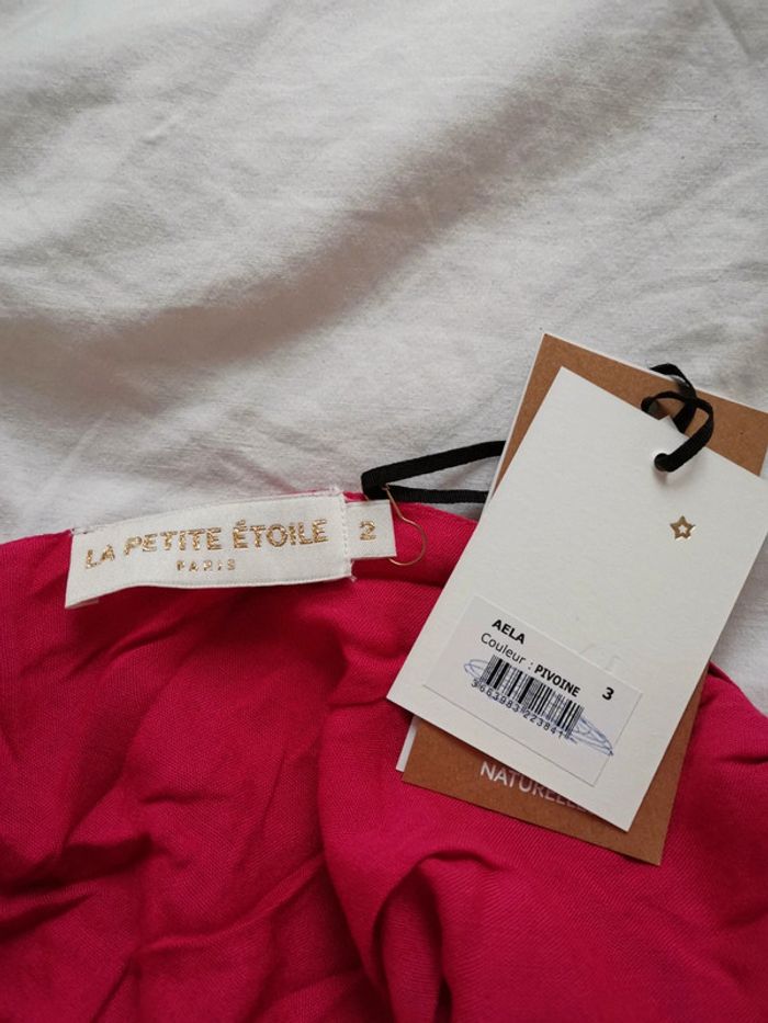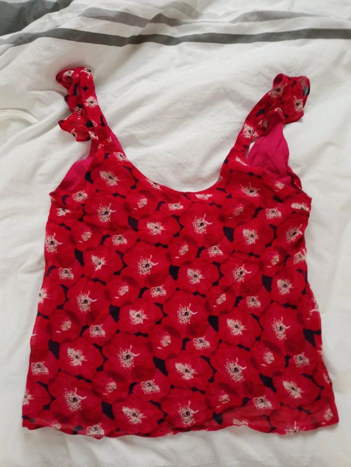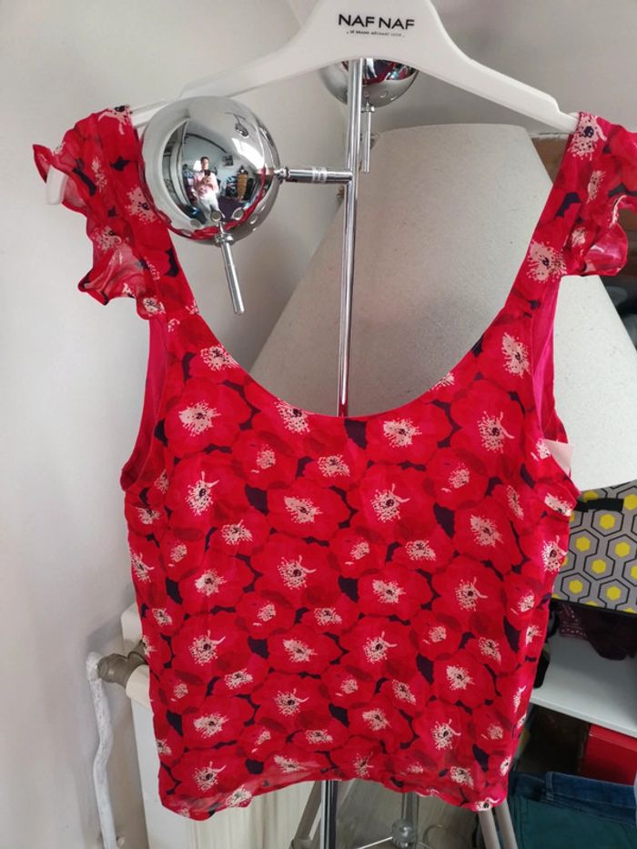 Neuf avec étiquette Débardeur Aela coloris pivoine La petite Etoile T2 Motifs fleurs rouges Doublé tissu rose Décolleté dos Taille bien