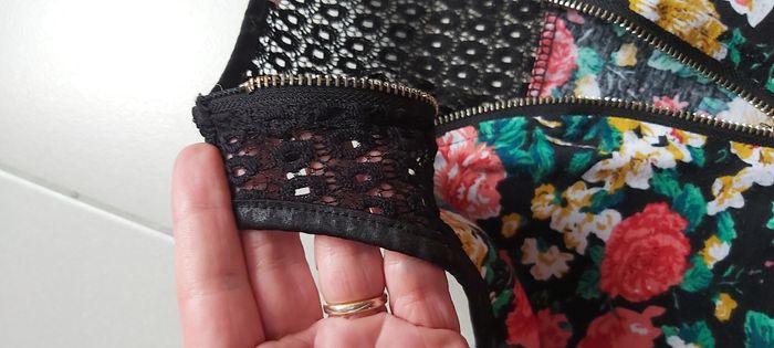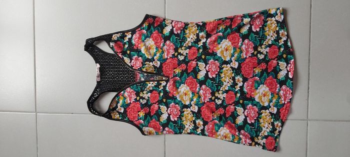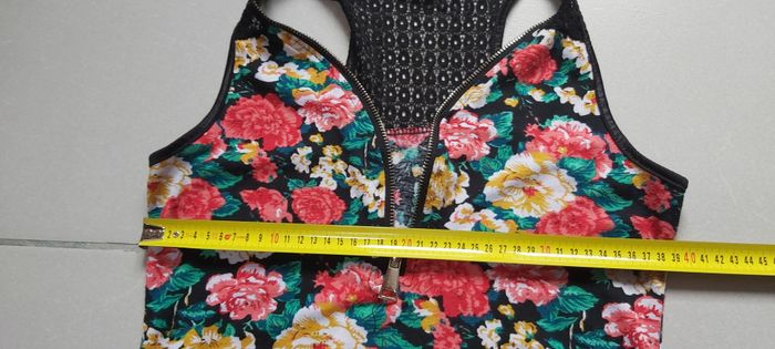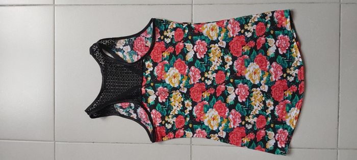 .Haut sans manche Fermeture éclair sur le devant Bretelles en dentelles et Haut du dos Couture un peu partie sur l'arrière voir photo Pas d'étiquette de taille correspond à du M #carineddiMfemme