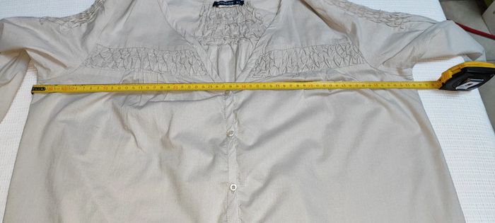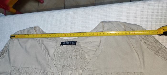 Neuf juste lavé. Détails plissés. Fermeture par boutons. Dimensions sur les photos. Boutonnières aux manches longues. D'autres vêtements en taille 44.46, XL, 3 ou 4 sur mon dressing, n'hésitez pas à regrouper les achats pour réduire les frais de port 😉