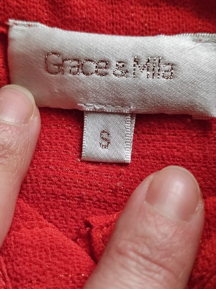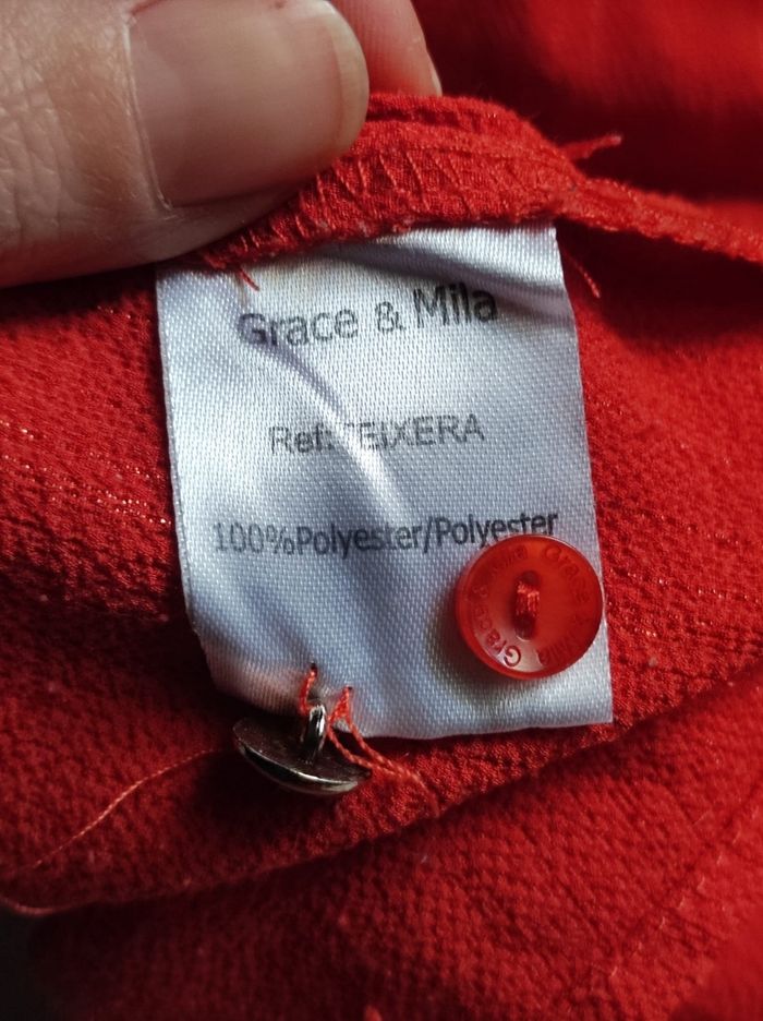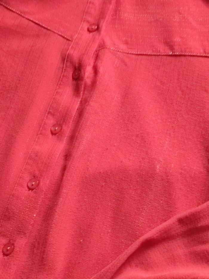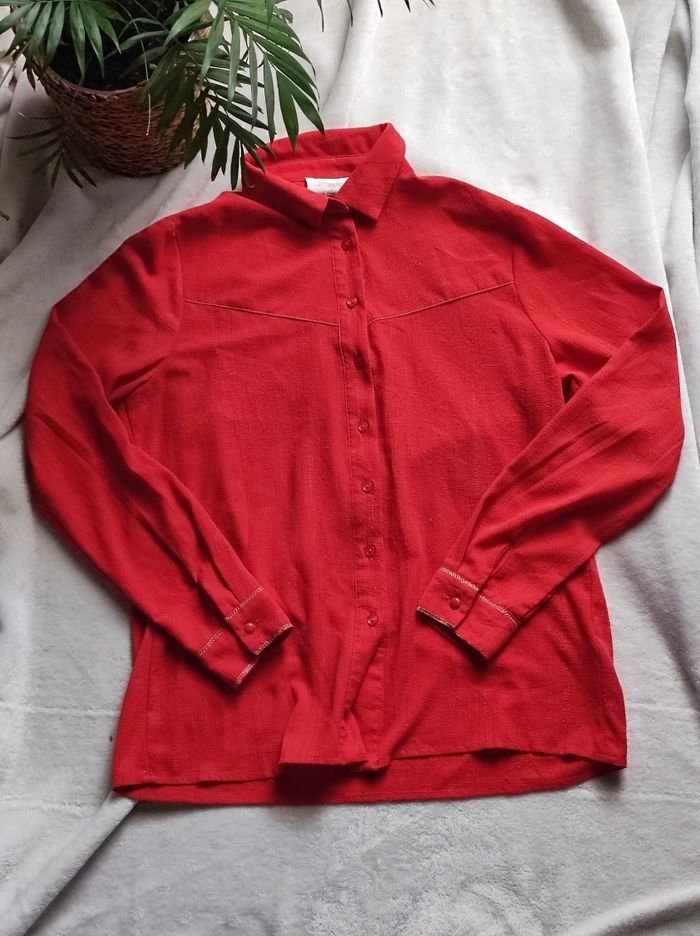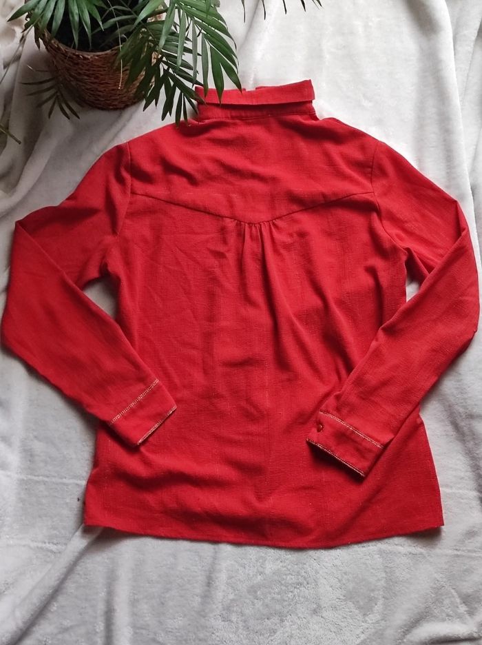 magnifique chemisier fluide et léger coupe style cowboy, ces 2 boutons de secours sont encore présents. Couleur rouge / orange sanguine. Marque grace & mila en taille S. Très légèrement bouloché par endroits cependant n'a ni trous, tâches ou déchirures encore utilise.