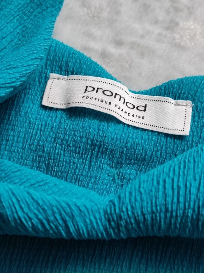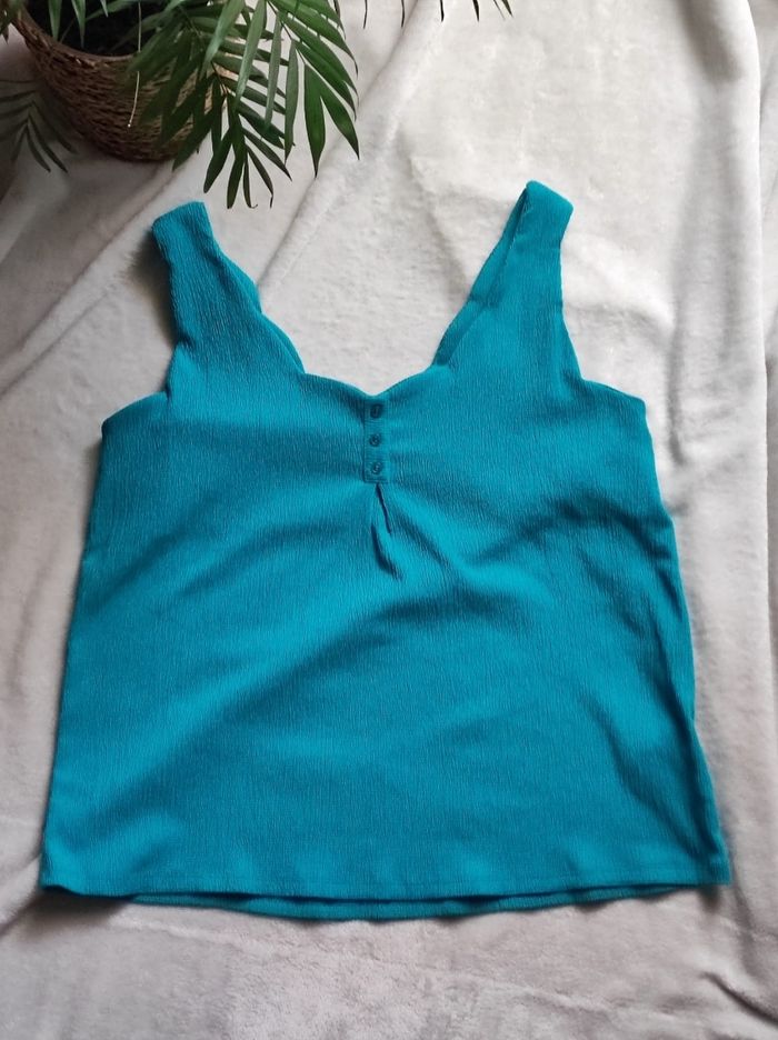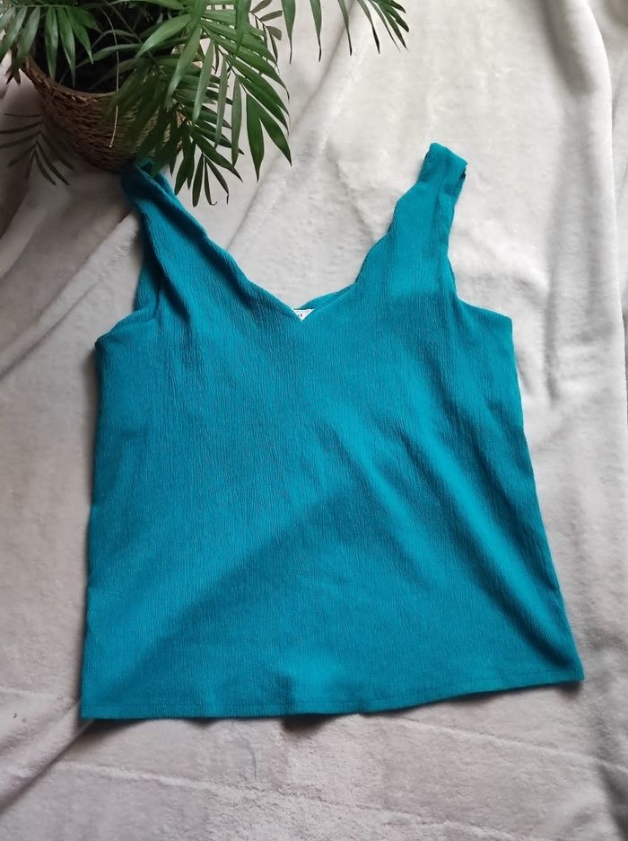 jolie haut / débardeur froissé à grandes bretelles et décolleté en v, bleu turquoise. Marque promod en taille S. En parfait état.