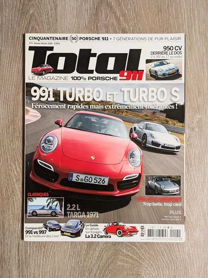 #_Porsche_ Total 911 numéro 4 (janvier 2014) 991 Turbo & Turbo S, 993 RS Clubsport RHD, 911 2.2 Targa, 991 vs 997, 911 Carrera 3.2, 991 Carrera 4, 996 Turbo 950ch, Carrera 3.0 RSR, 50 ans de 911, 901... 132 pages