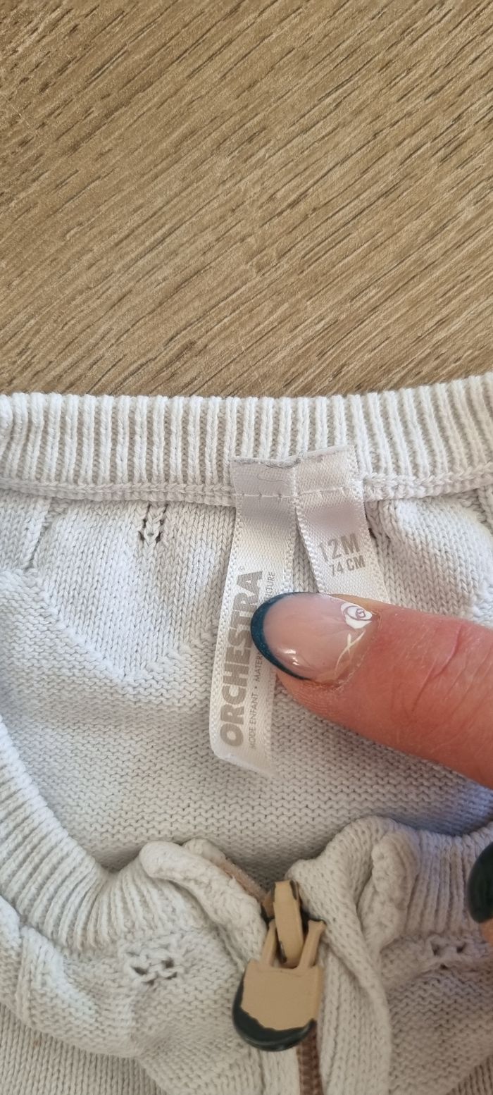 Gilet zippé Orchestra taille 12 mois Bon état (le bout de la tirette a perdu de la couleur)