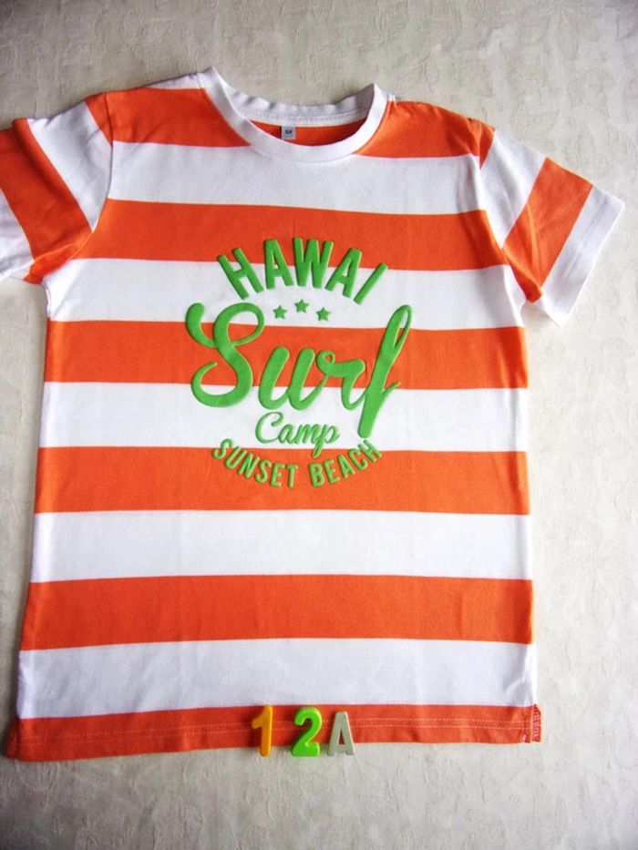 T.SHIRT - 12 ans 55% coton Rayé larges bandes blanche et orange Avec inscription HAWAI SURF ... Excellent état .. comme neuf