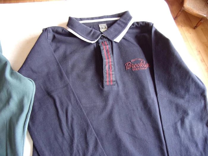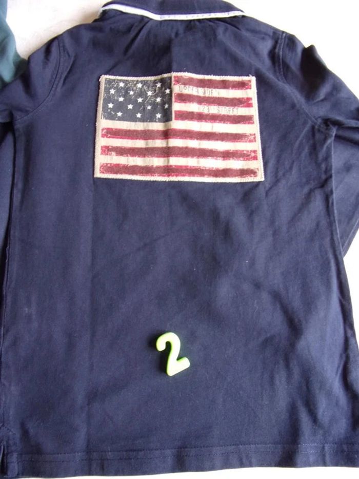 Beau Polo 8 ans Couleur marine double col blanc - Tape à l'oeil détails brodé rouge brooklyn au dos drapeau américain Très beau modèle Excellent état