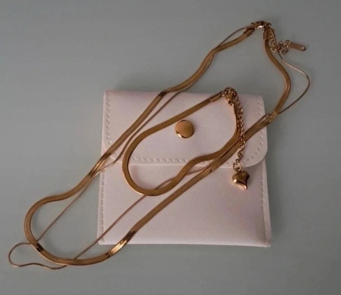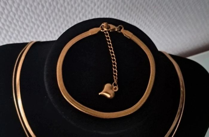Double collier avec bracelet ajustable En acier inoxydable doré Collier 40cm+5 Bracelet 17cm+5 J'offre un joli pochon poir cet achat Envoi rapide et soigné #doublecollieracierinoxydable #bijouxacierinoxydableajustable #parureacierinoxydable