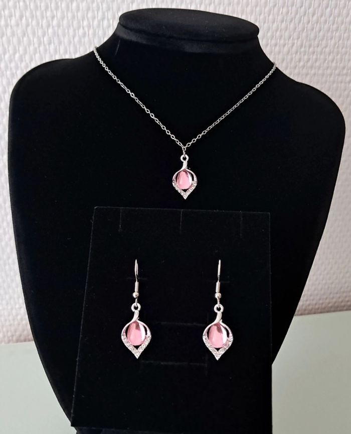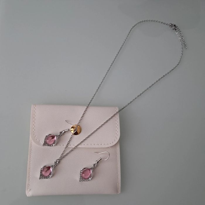 ✨️dautres couleurs disponibles ✨️ Jolie parure argenté avec goute rose En acier inoxydable Collier ajustable 44cm+5 Neuf Offre un pochon Envoi rapide et soigné #bijouxargenté #parureargenté #bijouxacierinoxydable