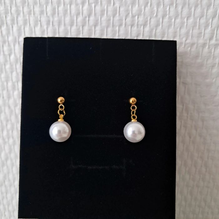 Jolie parure en acier inoxydable doré avec perles Ajustable Collier 40cm+5 Offre un petit pochon doux Envoi rapide et soigné #bijoixacierinoxydable #bijouxperle #parure perle