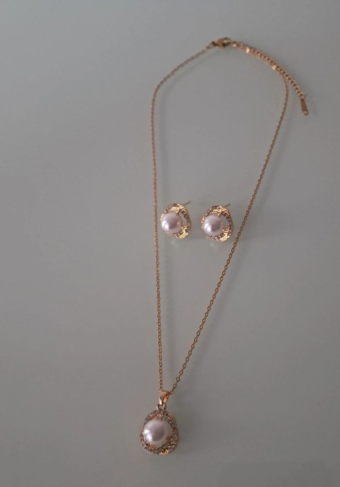 Parure en acier inoxydable doré avec perle et strass Collier ajustable Neuf Offre un pochon Envoi rapide et soigné