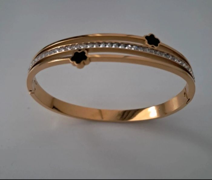 Joli bracelet jonc doré avec fleur et strass En acier inoxydable Neuf Envoi rapide et soigné #jonc #jonc acier inoxydable
