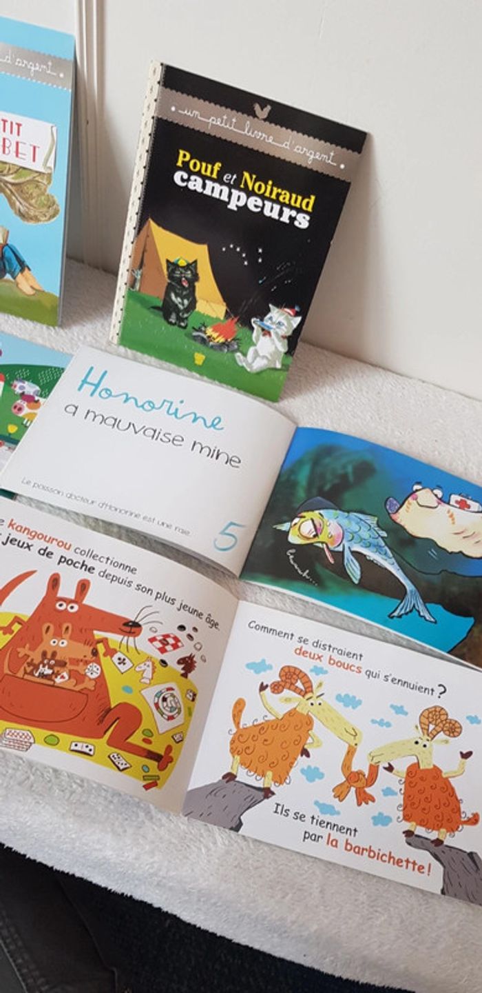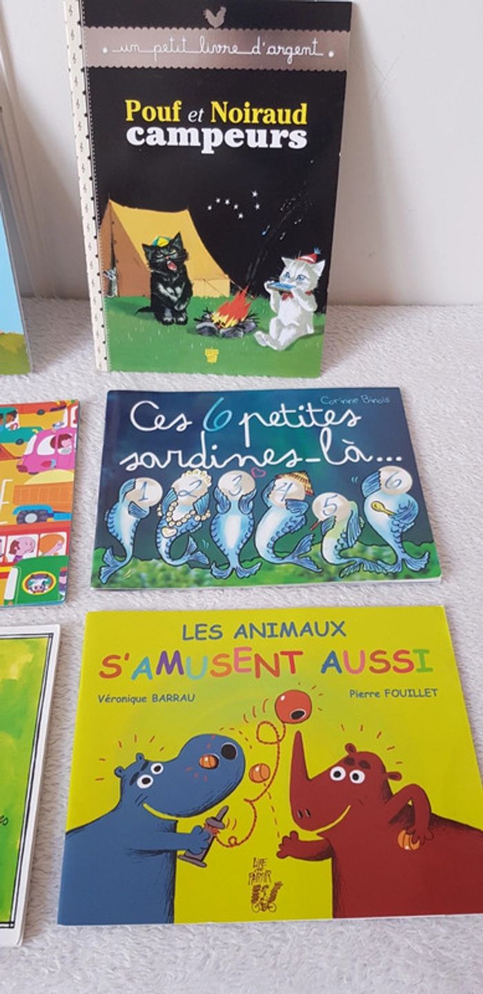 Lot de 6 livres : ton petit alphabet, le grand embouteillage, le loup et l'agneau, pouf et noiraud campeur, ces petites sardines là, les animaux s'amusent aussi. Très bon état !