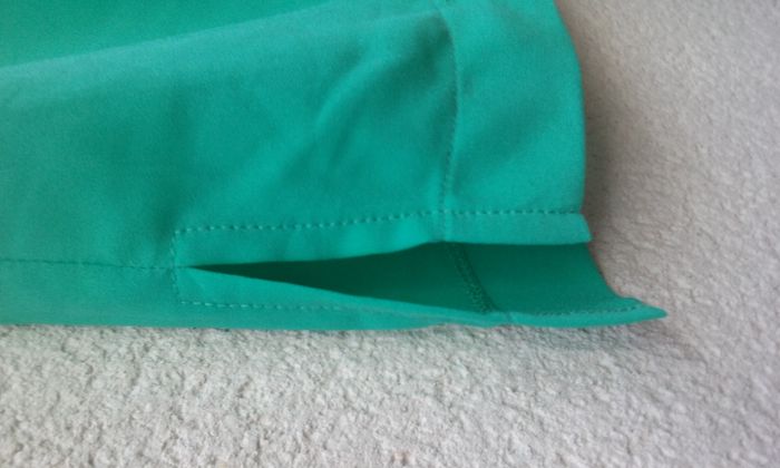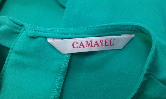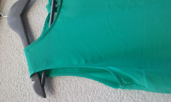 Haut transparent, nœuds au dos, petites fentes sur les côtés, attention coloris vert plus soutenu que sur les photos!