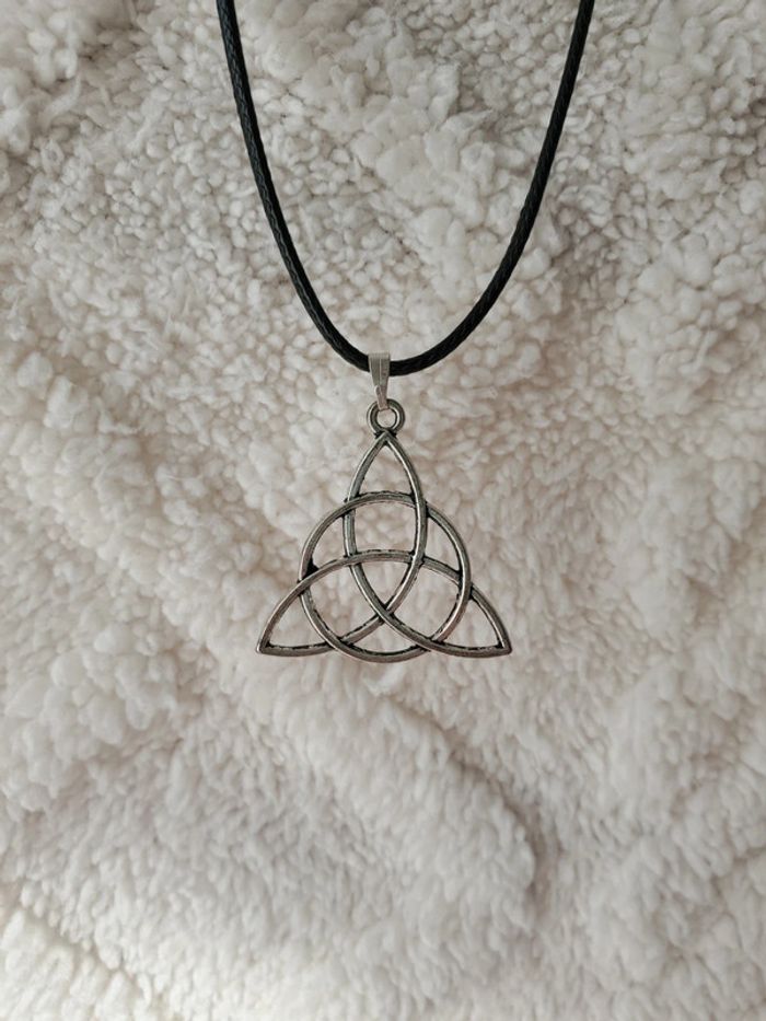 Collier avec un pendentif en forme de noeud celte triquetra