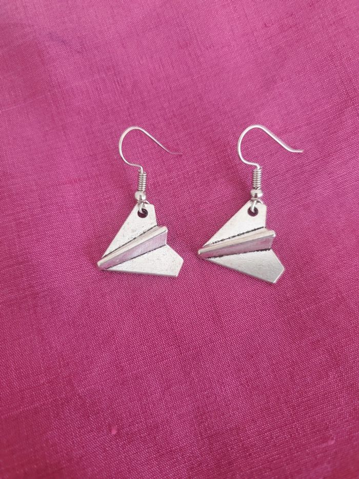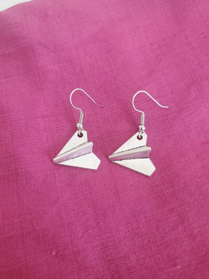 Boucles d'oreilles pendante argentée originale style avion en papier - photo numéro 1