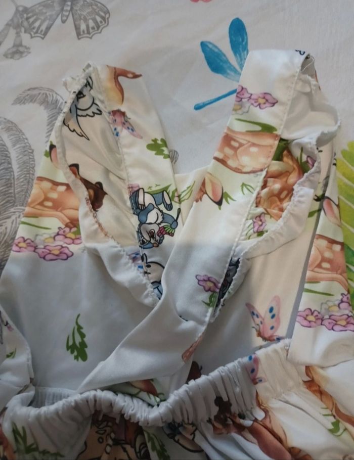 Combishort bambi , très peu portée. Froufrou au niveau des fasses, bretelles croisées au dos 😊 ⚠️ j'ai fais un petit point aux bretelles qui glissaient en permanence , facilement retirable 😉 D'autres pièces de la même taille en cliquant ici 🥰 #ilysia6mois => Réduction sur lot activée