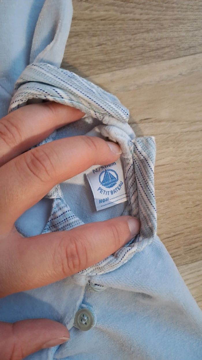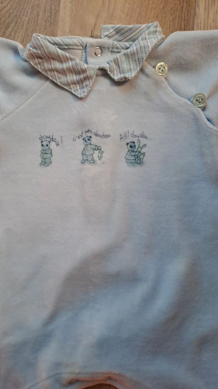 Pyjama 1 mois velours bleu clair à col Petit Bateau - photo numéro 3