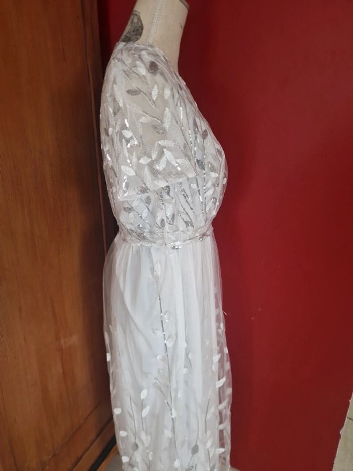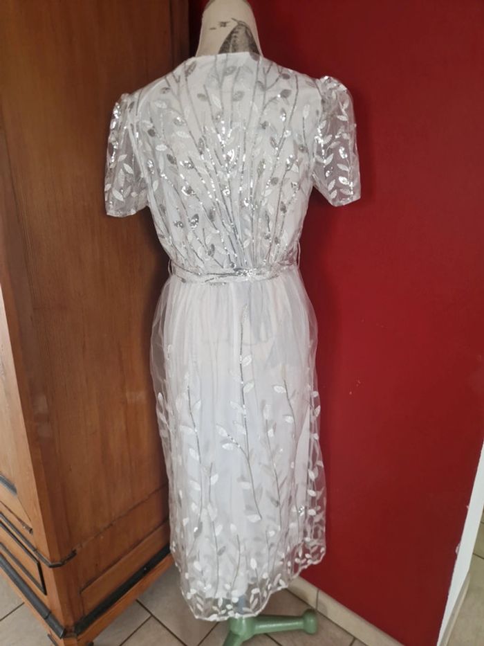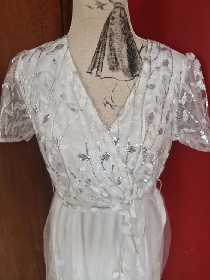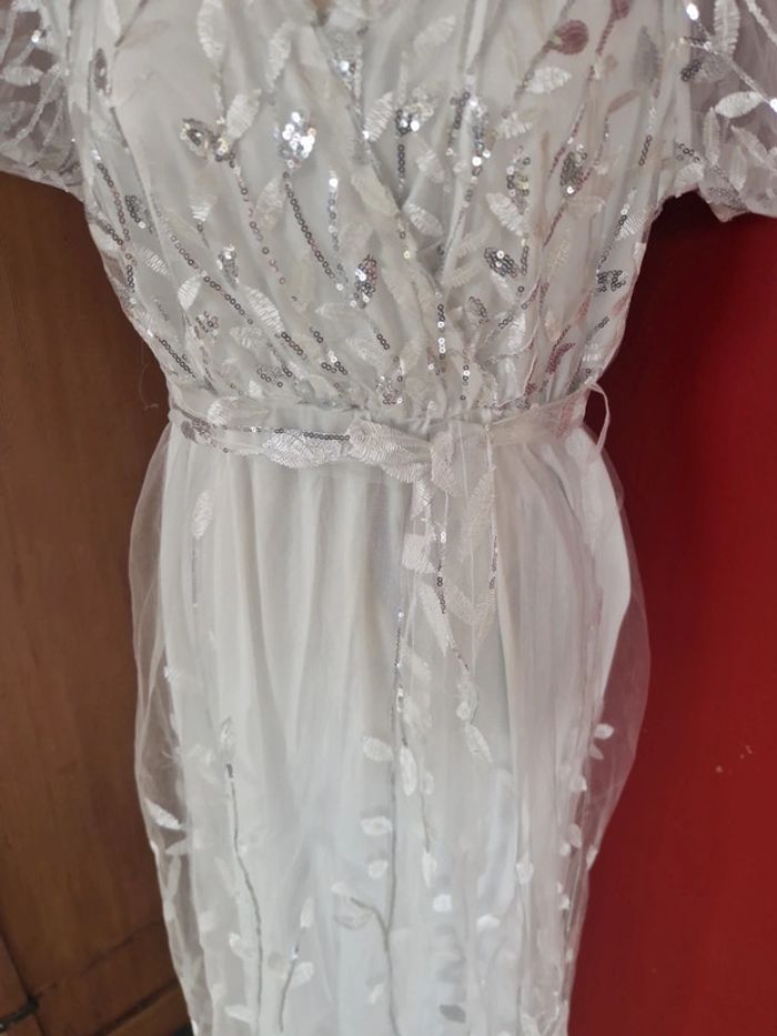 Robe longue à manches courtes, avec ceinture et taille élastique, Cache coeur, taille L, sans marque, neuve