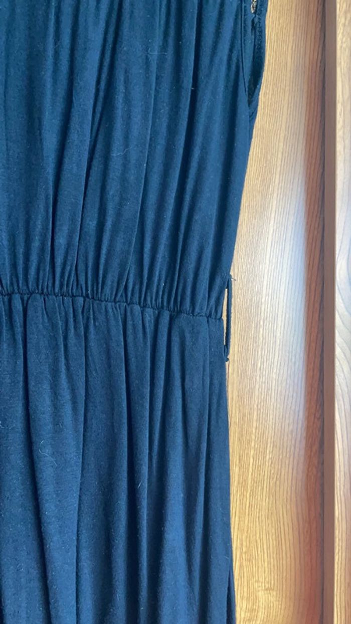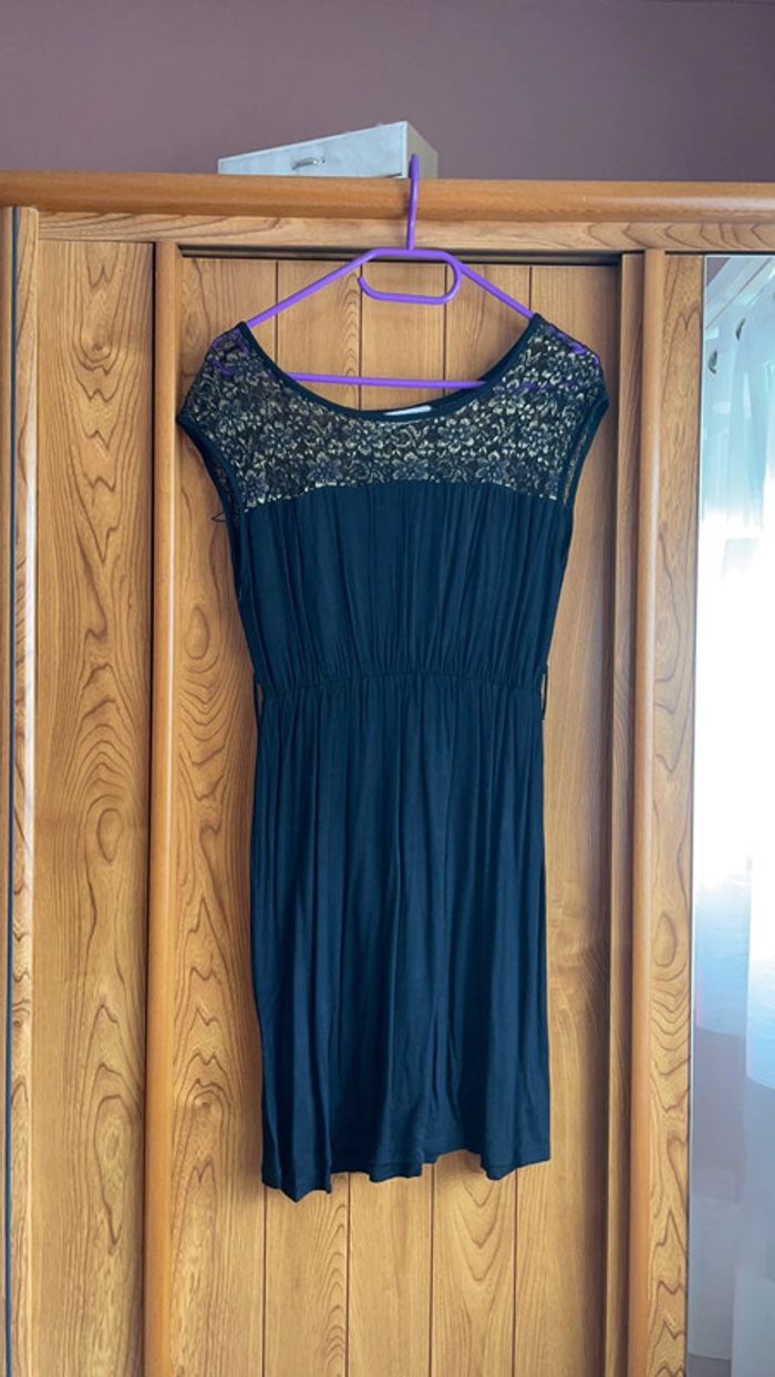 robe noire fluide avec dentelle doré au niveau di décolleté. taille 36/38