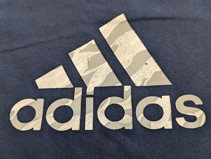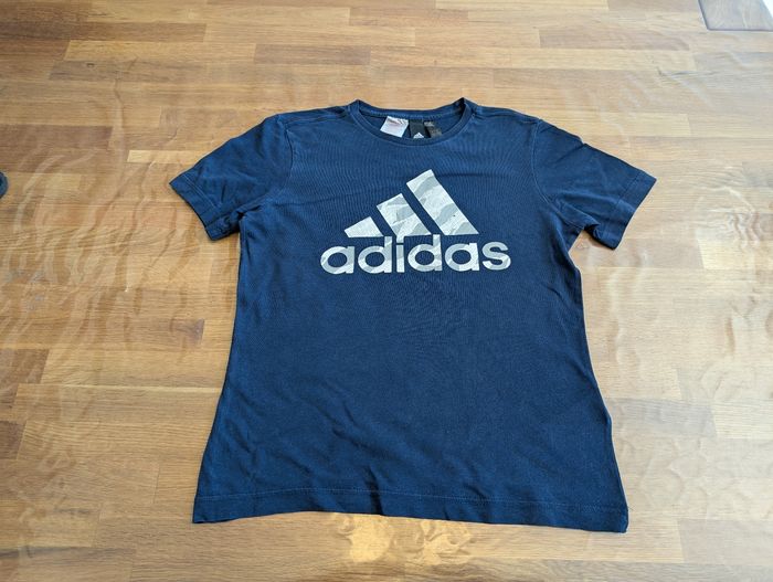 T-shirt garçon 11-12 ans Adidas Bon état général, bleu, mais logo abîmé, et deux trous en formation, coton.