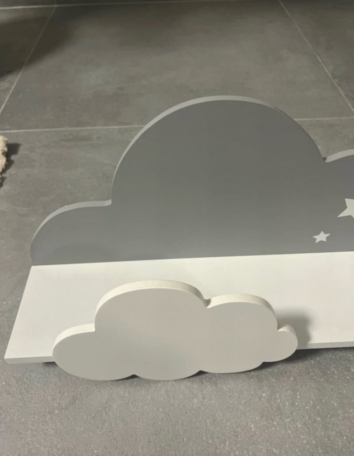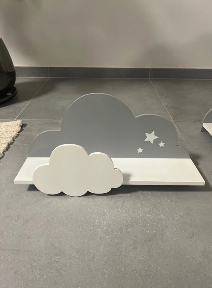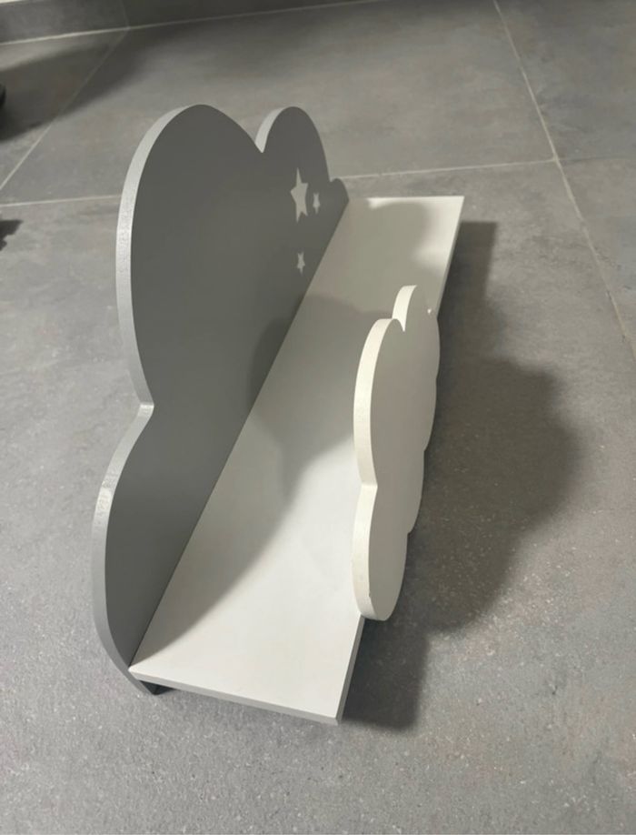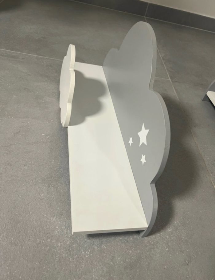 Étagère Vertbaudet nuage grise et blanche Très bon état J’en vends une deuxième identique à 6e car la deuxième a de légères traces mais reste en très bon état aussi