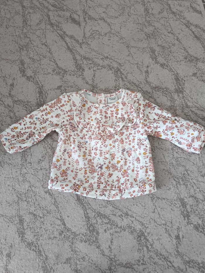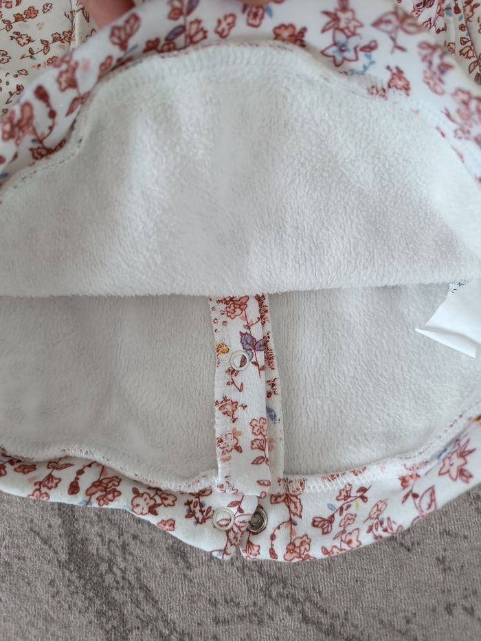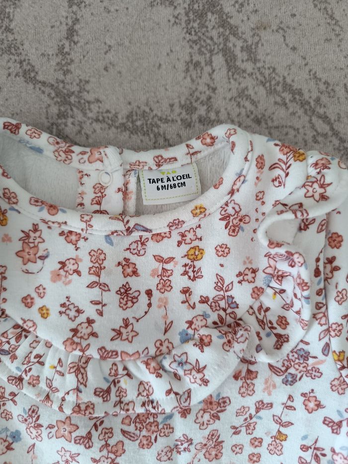 Pull blanc fleurie intérieur polaire fermeture pression dans le dos taille 6 mois tape à l'oeil