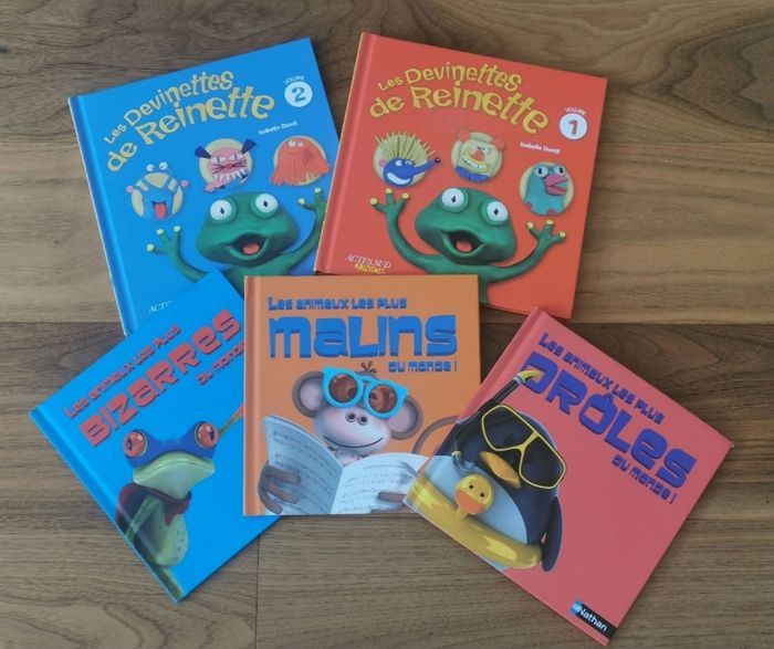 3 livres Edition Nathan : Les animaux les plus bizarres du monde Les animaux les plus drôles du monde Les animaux les plus malins du monde Les devinettes de Reinette Volume 1 et 2 (vendues) Peuvent être remis en main propre sur Paris, Bibliothèque François Mitterrand, La Défense, Gare de Lyon, Etampes