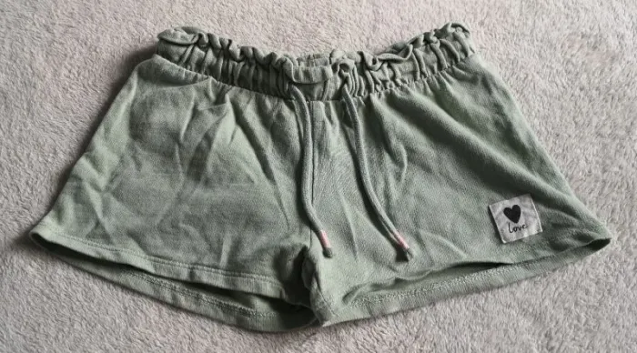 Short vert avec cordon au niveau de la ceinture, écusson cœur et texte "love" Taille 4 ans / 104 cm Marque H&M