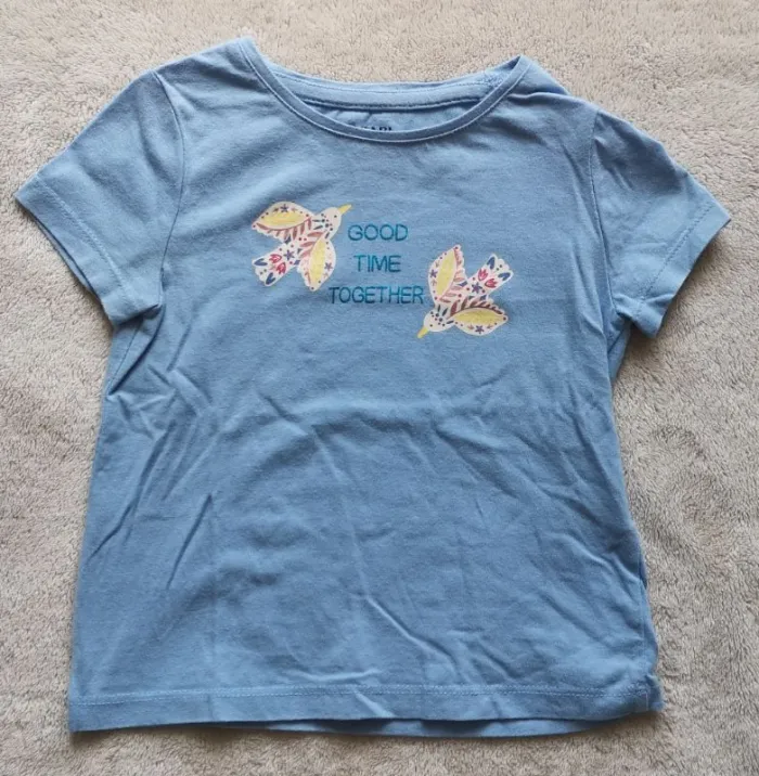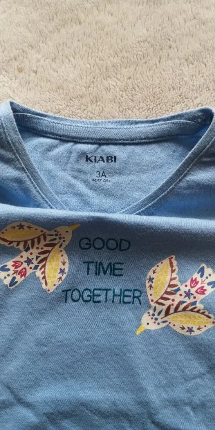 Tee-shirt bleu avec motif oiseau et texte "Good time together" Taille 3 ans / 90-97 cm Marque Kiabi