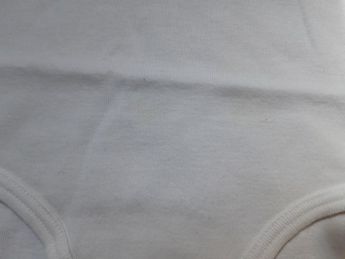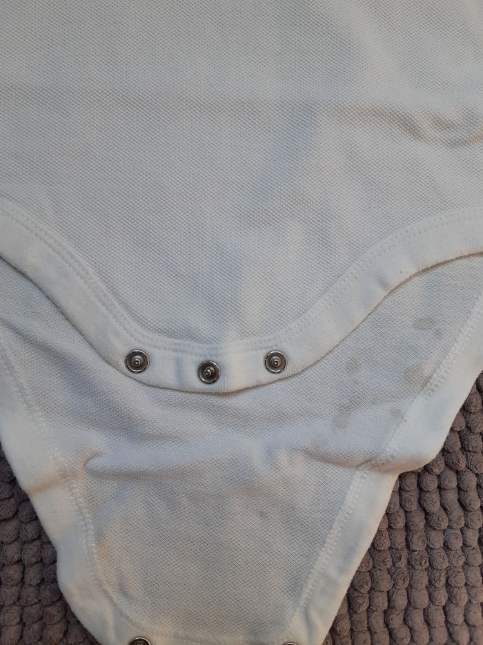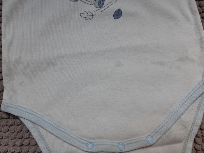 Les 2 bodies sont tâchés. Les tâches les plus voyantes pour le manche courte ne se verront pas car elles se situe au niveau de la couche.