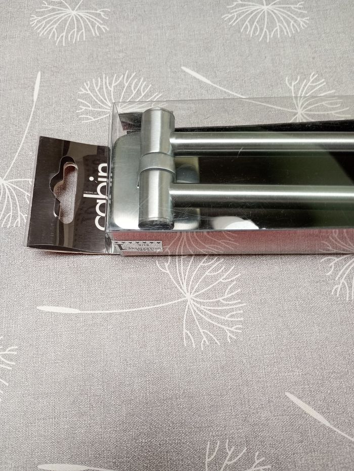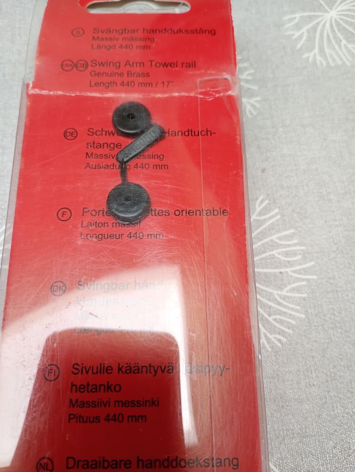 Porte serviette orientable en laiton massif. De très bon qualité, lourd. Longueur : 440 mm. Marque : Smedbo. Environ 100 € neuf. Neuf.