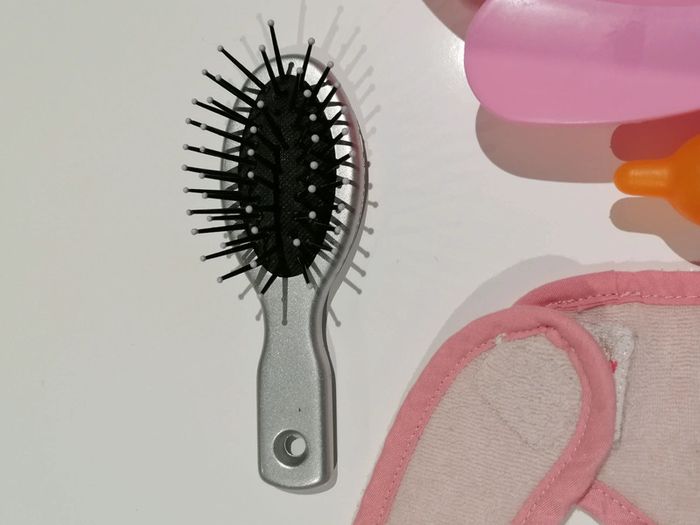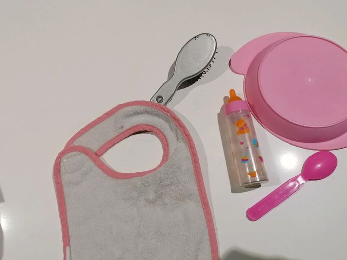 Lot accessoires pour poupée /poupon Comprenant : - une serviette scratch - une cuillère princesse - un biberon maxi toys -une assiette bébé - une mini brosse ajouté Uniquement mondial relais ⚠️📦
