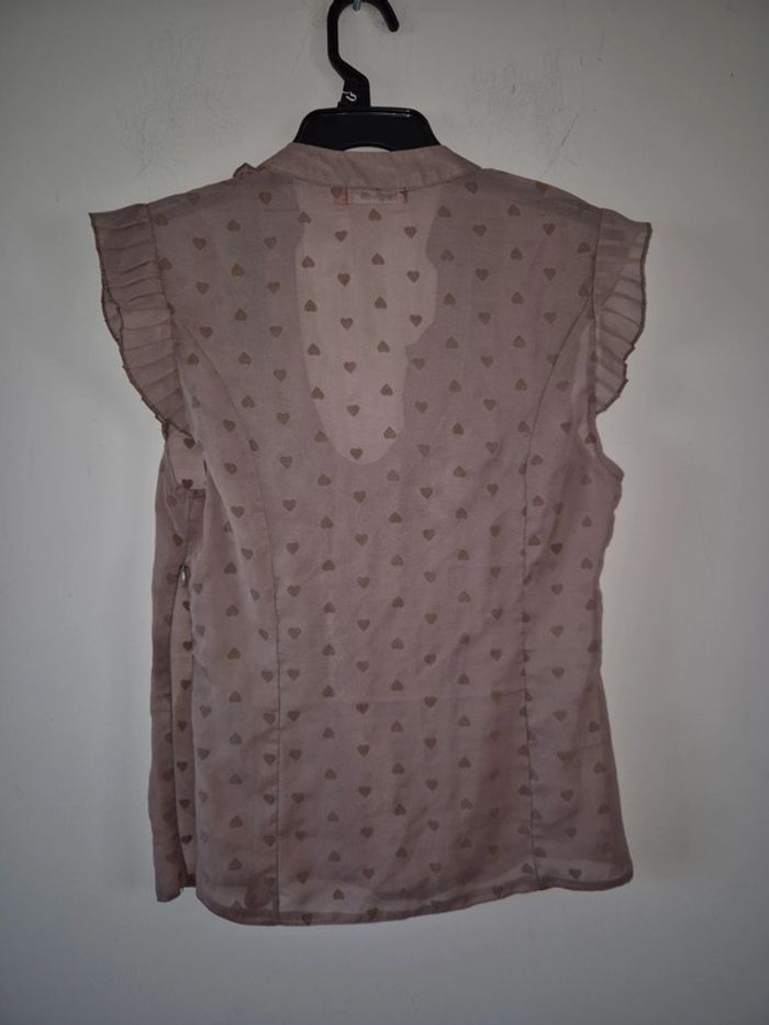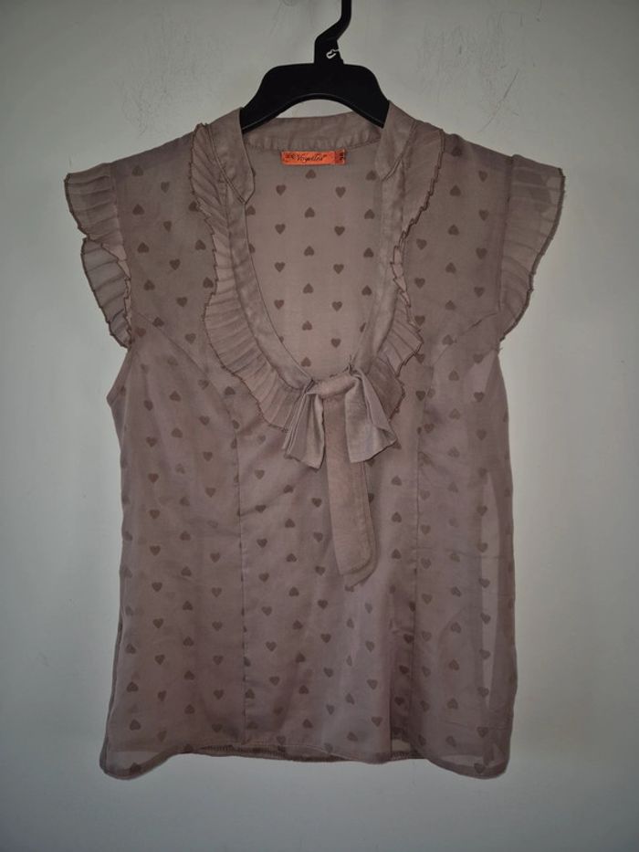 Blouse Voyelles en très bon état. Légèrement transparente. Nœud sur le devant et fermeture éclair sur le côté. 100% polyester #femme36celine14