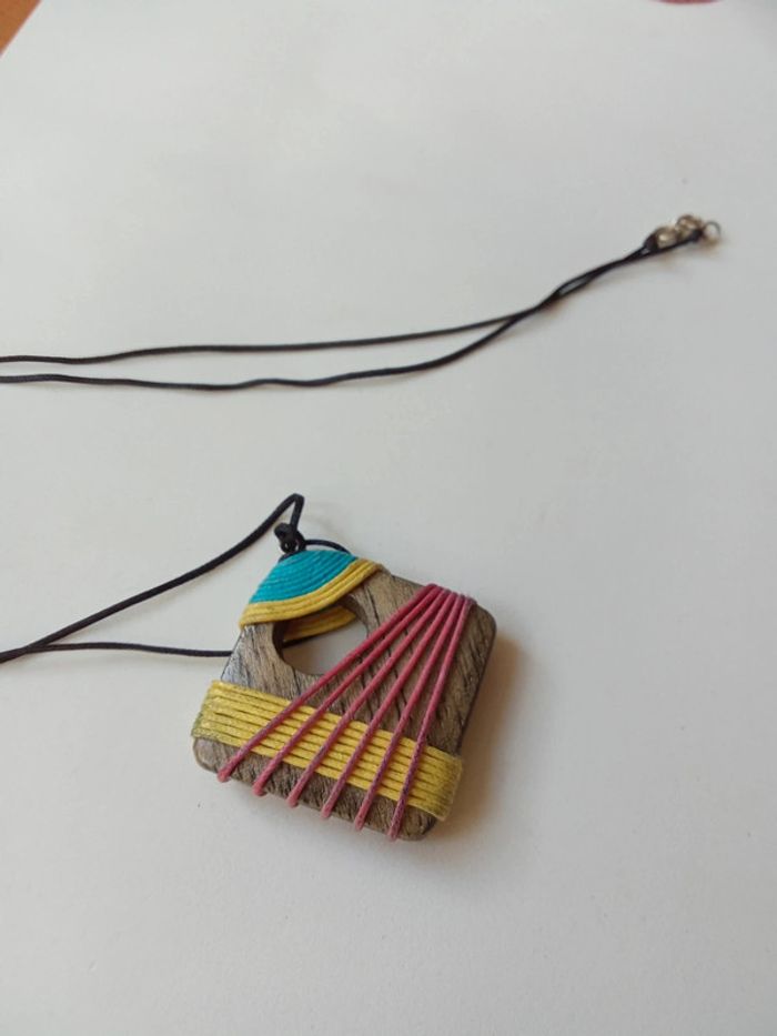 Collier pendentif ethnique coloré en bois #ethnique #multicolore #colore #collier #collar #necklace #bijou #joyeria #madera #bois #wood #macrame #fil #bisuteria #original #ado #boho #hippie #dafnezado #dafnezbijou