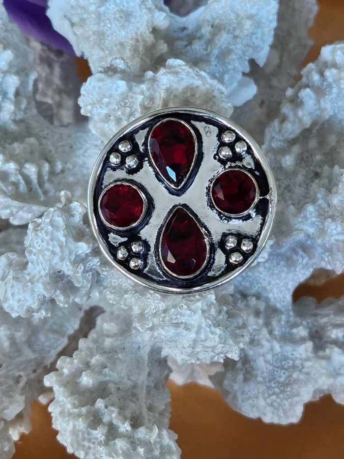Bague en argent sterling 925 avec ses 4 pierres grenat rouge - photo numéro 1